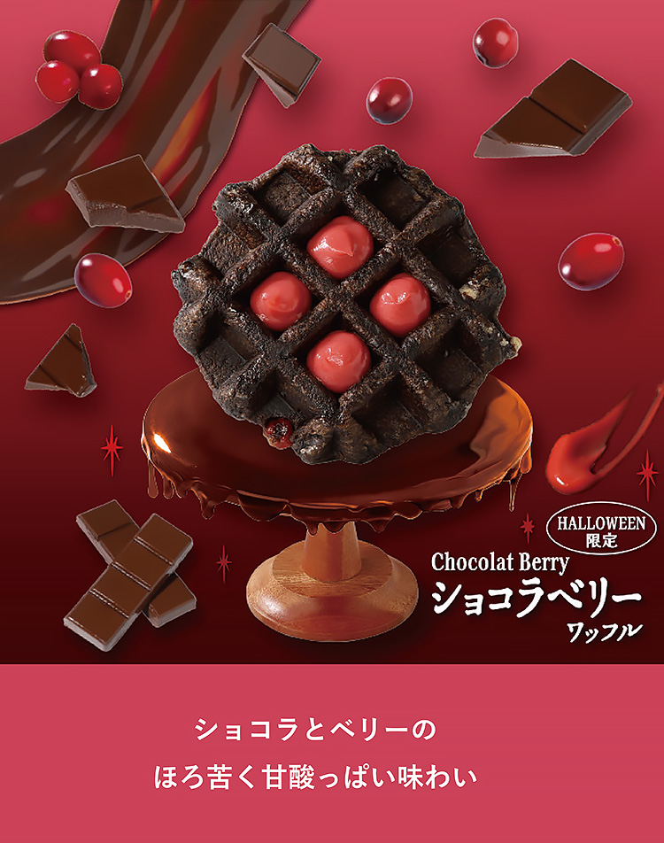 ブラックココアパウダーとスイートチョコレート(準チョコレート)で黒く仕上げたほんのりビターなショコラ生地に、ドライクランベリーを合わせ、甘酸っぱいフランボワーズクリームを絞り仕上げました。